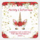 Sticker Carré Noël Poinsettia Unicorne avec les faveurs du Parti