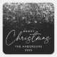 Des autocollants de Noël modernes avec des flocons de neige blancs au sommet du design avec un arrière - plan noir. "Joyeux Noël" est affiché dans un script de calligraphie blanche tendance avec votre nom de famille et l'année ci-dessous en lettres blanches. Utilisez les autocollants festifs pour sceller les cadeaux de Noël, les sacs de faveur et les enveloppes de vacances.