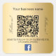 Un arrière - plan à l'allure d'or. Personnalisez et ajoutez votre nom d'entreprise, votre propre code qr à votre compte Facebook et un texte. Texte noir. Avec le texte x2 : Suivez-nous !