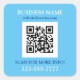 Sticker Carré Nom commercial Promo, QR Code, Sky Blue & White