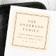 Élégantes étiquettes d'adresse de retour couleur crème ou personnalisée, avec votre nom de famille dans une police serif élégante et l'adresse de retour ci-dessous entourée d'une double bordure.