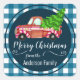 Sticker Carré Nom de famille de camion rouge de Noël rétro