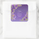 Sticker Carré Note + Noms des Mariés Fleurs Mauve Violet