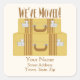 Vous avez besoin d'un faire-part "Nous avons déménagé" pour votre nouvelle adresse ? Cette carte postale présente les mots "We've Moved" (Nous avons déménagé) au-dessus d'une illustration de valises rayées vintages.