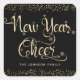 Sticker Carré Nouvel an Jouer Black Gold Script Parties scintill