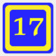 numéro 17, arrière - plan bleu, cadre jaune