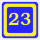 Sticker Carré numéro 23, arrière - plan bleu, cadre jaune