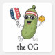 La première personne à jouer au pickleball était un pickleball ! Cette drôle de conception de pickleball est un cornichon jouant au pickleball avec le drapeau américain sur sa pagaie!