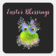 Sticker Carré de travail de la bénédiction de Pâques aux oiseaux mignons. Joyeux Pâques. Amour !