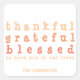 Bel et amusant Ombre Orange Grateful Blessed Thanksgiving Carré Stickers sont le moyen parfait pour sceller une enveloppe pour envoyer une photo de famille à vos amis et votre famille. Comprend trois nuances d'orange dans "reconnaissante béni" et "pour vous avoir dans nos vies." La typographie "Les Andersons" peut être changée en nom de famille ou de personne. Faites passer de l'amour à Thanksgiving.