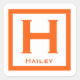 Sticker Carré Orange Personnalisé Initial et Nom. Parfait pour un thème de fête pour enfants, Retour à l'école étiquettes, organisation, célébrations, fêtes et plus encore. Coordonner les éléments et autres couleurs disponibles.