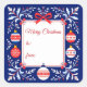 Sticker Carré Ornements de Noël en Art Populaire Bleu Nuit et Ro