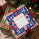 Cette autocollante de cadeau de Noël présente un fond bleu nuit profond avec une bordure époustouflante de motifs d'art populaire complexes en blanc et rouge. Quatre ornements de Noël uniques, chacun avec son propre motif détaillé, sont suspendus avec grâce autour de la boîte blanche centrale. Un délicat nœud rouge en haut lie le design ensemble, tandis que les champs "à :" et "de :" facilitent la personnalisation.