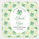 A charming St. Patrick’s Day baby shower sticker featuring a soft green background, golden horseshoes, and scattered four‑leaf clovers for a sweet “lucky charm” theme. The central white oval frames the event details beautifully, creating a warm, welcoming design perfect for celebrating a growing family. Ideal for March celebrations, Irish‑inspired themes, or any baby shower that embraces luck, joy, and new beginnings.