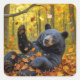 Sticker Carré Ours Noir Dans Les Feuilles Automnes