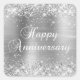 Sticker Carré Pailleté Argent Joyeux Anniversaire de Mariage