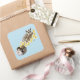 Un joli planeur de sucre assis sur une branche d'arbre avec de petites fleurs jaunes, roses et blanches tout autour. Le planeur à sucre et les fleurs sont tous dessinés dans un style tatouage dans un décor bleu