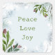 Autocollant carré "Paix, Amour, Joie" Végétation de Noël en pin rustique