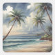 Sticker Carré Palm Trees Hawaiian Travel Honolulu Blue Sea