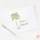 Autocollants de nom personnalisés dessin de ligne d'arbre de palmier à coco vintage pour mariages côtiers, fêtes de plage, tout événement à thème tropical
