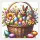 Sticker Carré Panier de Pâques de printemps Lapin en chocolat Œu