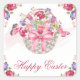 Sticker Carré Panier floral rose et papillons Joyeuses Pâques