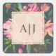 Sticker Carré Papier à lettres monogramme floral botanique Rose