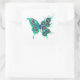 Sticker Carré Papillon aux plumes de paon vert