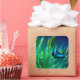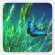 Sticker Carré Papillon bleu Morpho sur herbe verte