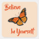Soulevez les esprits des gens avec cet autocollant d'affirmation positive inspirant. Grand comme un cadeau ou une affirmation personnelle d'estime de soi! Ce design comprend un papillon monarque orange et noir brillant et le texte "Croyez en vous".