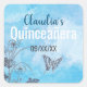 Sticker Carré Papillon et fleurs en argent sur Quinceanera bleu