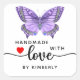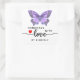 Sticker Carré Papillon violet fait main avec amour blanc