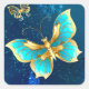 Sticker Carré Papillons d'or sur un Arrière - plan bleu