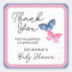 Un sticker à thème baby shower à thème papillon mignon avec un papillon rose et bleu qui est parfait pour un baby shower en l'honneur des jumeaux...un garçon et une fille. Le design offre de l'espace pour un court message de remerciement.