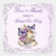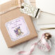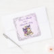 Papillons violets fête de thé de mariage avec des fleurs et des papillons violets et une bordure argentée ornée vintage victorienne, autocollants de remerciement élégants imprimés personnalisés pour cadeaux