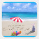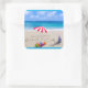 Sticker Carré Pâques joyeuses sur la plage tropicale côtière de