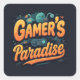 Un design graphique vibrant et nostalgique avec le texte "Le Paradis du joueur" dans une police ludique et pixélisée qui rappelle les jeux vidéo classiques. Le design intègre des éléments d'aventure et d'exploration, avec une palette de couleurs qui évoque des sentiments d'excitation et de nostalgie. La composition globale est dynamique et invitante, attrayante pour les joueurs de tous âges.