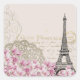 Sticker Carré Paris France Tour Eiffel avec Fleurs Roses