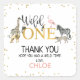 Parties scintillant d'or Wild One Safari Anniversaire Carré de Merci Sticker de la fille safari sauvage un premier anniversaire autocollant de faveur avec une aquarelle noire et fausse tête de feuille d'or, divers animaux safari et quelques faux points d'or. Idéal pour une petite fille sauvage d'un safari thème de la fête de premier anniversaire.