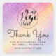 Ce stickers de remerciement d'entreprise simple et glamour est parfait pour toute femme d'affaires moderne : maquilleurs, coiffeurs, esthéticiennes, esthéticiennes, écrivains, agents immobiliers et beaucoup plus de professions. Il présente un dégradé d'ombre à la parties scintillant unicorne (violet, rose, jaune et bleu) à l'arc-en-ciel brillant imprimé faux avec typographie manuscrite noire et un endroit pour votre logo, message de remerciement, et site Web. C'est élégant, mignon, girly, joli, chic, tendance, et cool. ***REMARQUE IMPORTANTE DE CONCEPTION : Pour toute demande de conception personnalisée comme les demandes de produit correspondant, les changements de couleur, les changements de placement ou toute autre demande de modification, veuillez cliquer sur le bouton "message" ou envoyer un courriel au concepteur directement à lafemme.art@gmail.com. Vous pouvez même lui envoyer par courriel une demande pour un design entièrement personnalisé et nouveau.