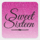 Une jolie parties scintillant rose chaud moderne, fausse ombre Sweet 16 sticker ou enveloppe sceau avec motif sombre rose qui s'estompe sur un arrière - plan blanc. Le texte "Sweet sixteen" en noir est défini dans un script moderne. Parfait pour un Sweet sixteen glamour, parfait pour elle, la fashionista qui aime motif moderne, étincelant, luxe et glamour.