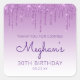 Ces stickers chic 30ème anniversaire de remerciement-vous avec une bordure brillante violet fausse parties scintillant goutte à goutte et violet ombre arrière - plan. Les mots "Merci pour venir !" apparaissent dans le violet foncé. Personnalisez-les avec son nom en écriture manuscrite, ainsi que son anniversaire et la date ci-dessous.