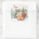 De beaux autocollants de Noël "à et de" représentent une maison en pain d'épice avec le feuillage de Noël derrière, avec des baies sèches et des sucres de canne, et une scène hivernale de merveilleux derrière tout.