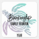 Sceller l'enveloppe d'invitation à la réunion de famille avec un autocollant personnalisable avec des peintures de tortues tribales vert pastel et violet et du texte sur un arrière - plan blanc. Personnalisez n'importe quel élément de texte ou supprimez l'un d'eux. Choisissez parmi deux tailles de carrés ou plusieurs formes où la conception convient.