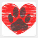 Sticker Carré Paw Chien Croquis Dans Le Coeur Rouge