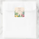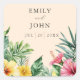 Sticker Carré Pêche Aquarelle Fleurs tropicales Mariage Faveur