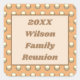 Personnalisez votre réunion de famille avec ces autocollants beaux et bon marché. La motif est dotée d'un élégant motif à pois dorés contre un arrière - plan de pêche foncé. Le centre est doté d'un rectangle à contour marron avec un milieu de pêche pâle qui fournit l'arrière - plan pour votre nom de famille et votre année. Créez un autocollant customisé à ajouter aux enveloppes ou à vos activités de vente au détail.