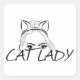 A simple b&w illustration of a woman in playful cat ears peering over the words Cat Lady.