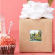Sticker Carré Peinture De Cygnes Sur Un Lac Près D'Une Maison