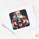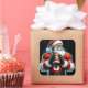 Par une journée d'hiver enneigée, le Père Noël se tient en confiance, tenant un football près de sa poitrine. Habillé de son costume rouge traditionnel avec garniture blanche, il exhale une joie festive tout en se préparant à un match de football animé au milieu des flocons de neige qui tombent.
